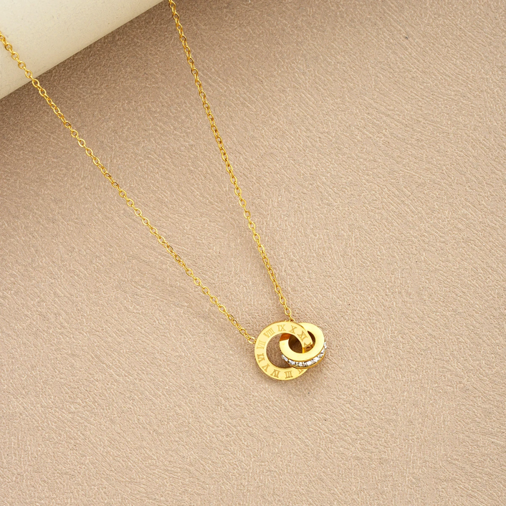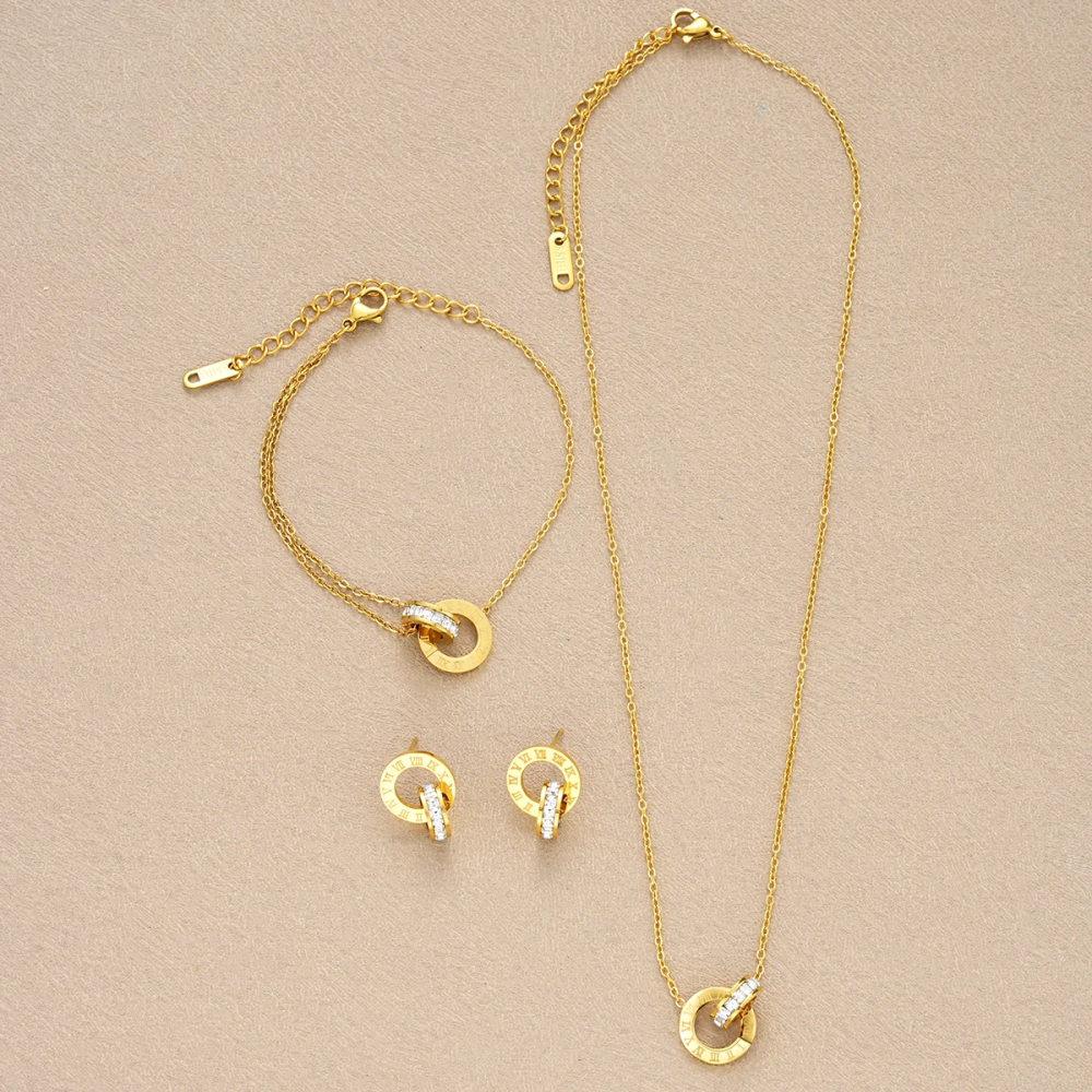 طقم سلسال ذهب فاخر من التيتانيوم ستيل مزود بأحجار زركون براقة، يجمع بين المتانة والأناقة، مثالي للارتداء اليومي والمناسبات الخاصة، ويمنح إطلالة عصرية تجمع بين البساطة والفخامة.